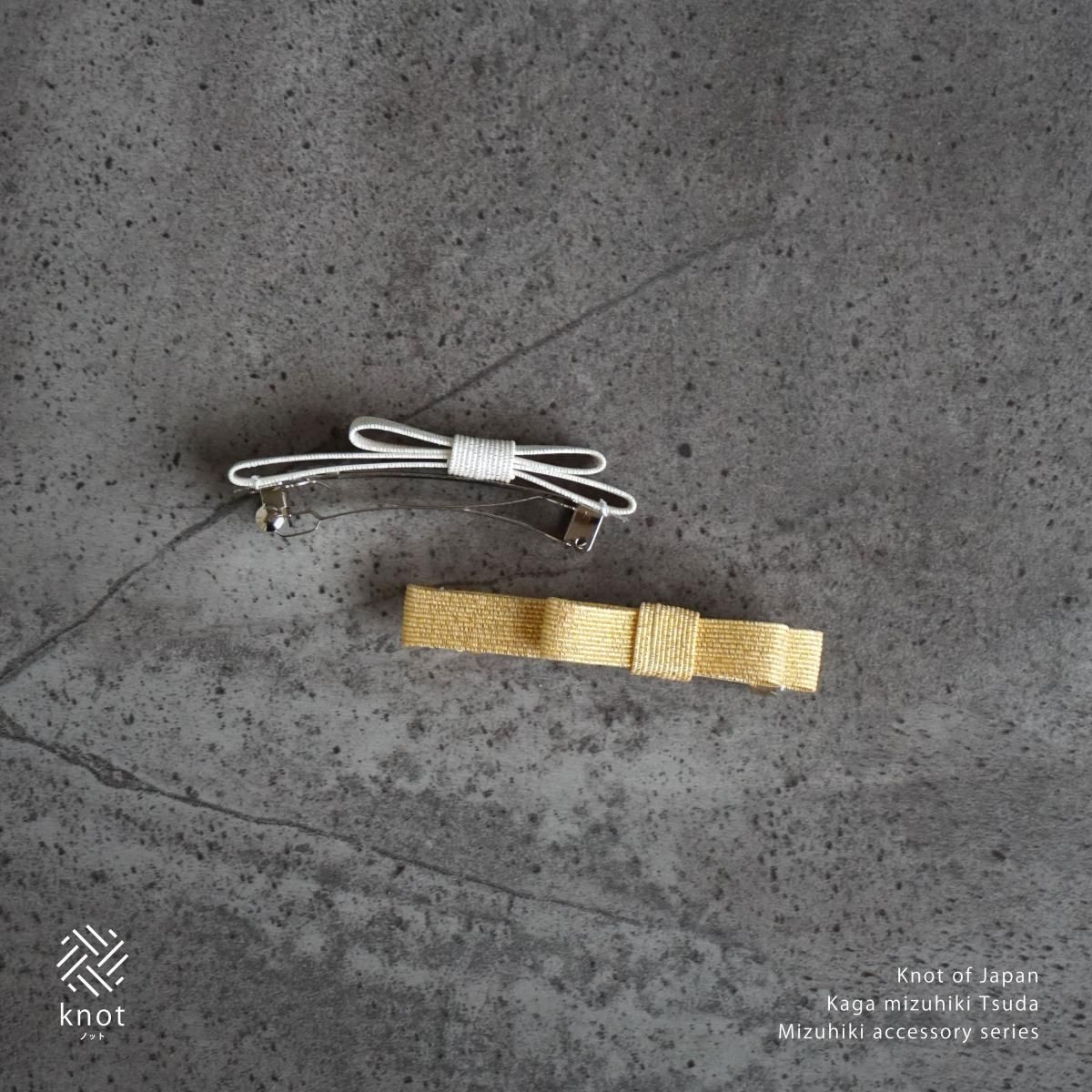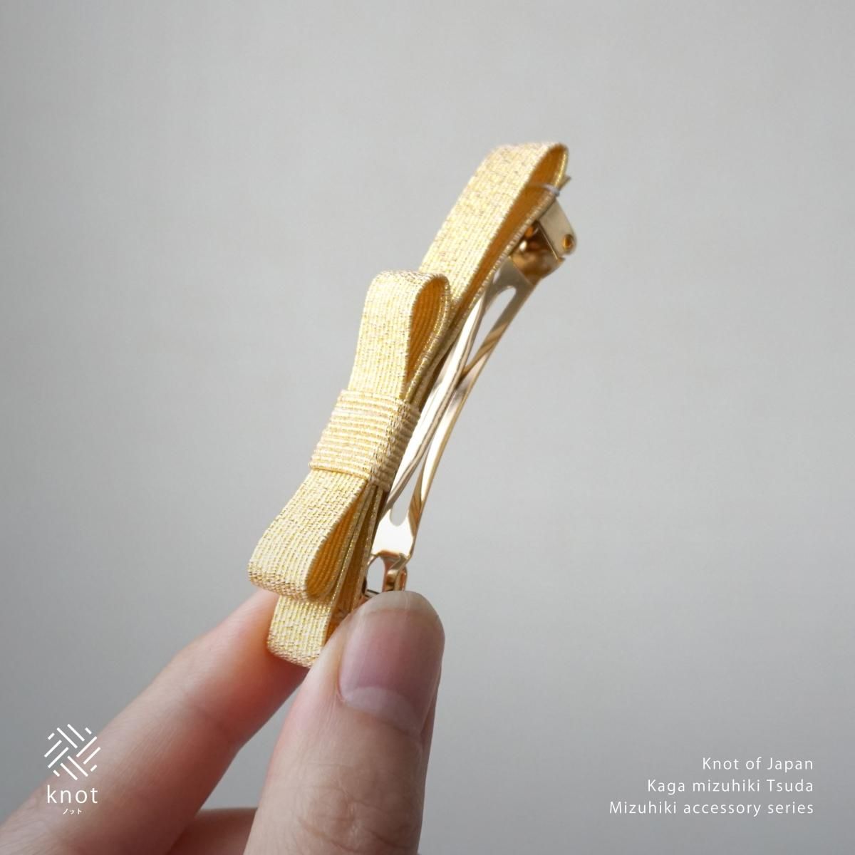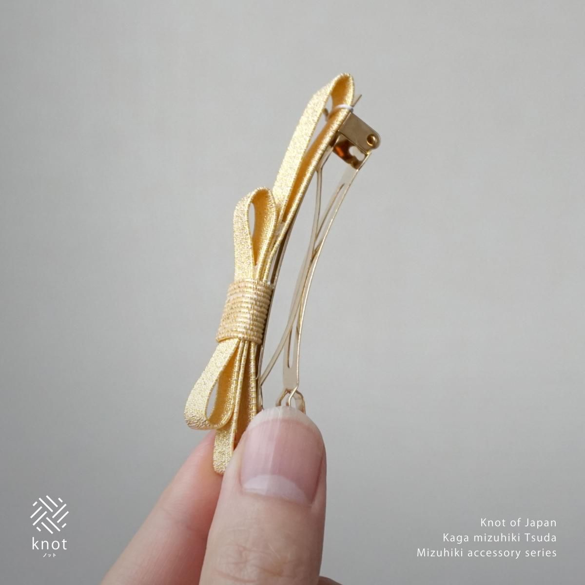 リボンをイメージした水引細工のバレッタ。シンプルなシルエットで、ピアノの発表会や入園式 入学式 卒業式 卒園式 七五三 結婚式などのヘアアクセサリーとしてもごお使い頂けます。