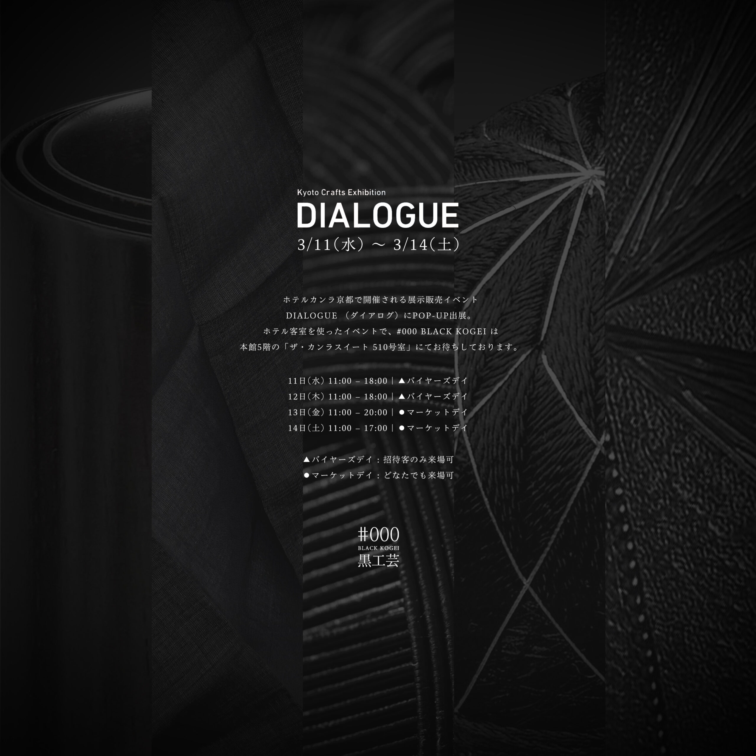 3/11(水) 〜 3/14(土) DIALOGUE(ホテルカンラ 京都) #000 BLACK KOGEI POP-UP 出展のお知らせ